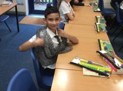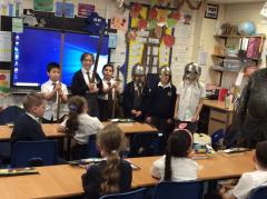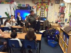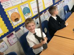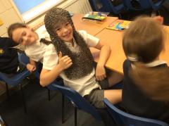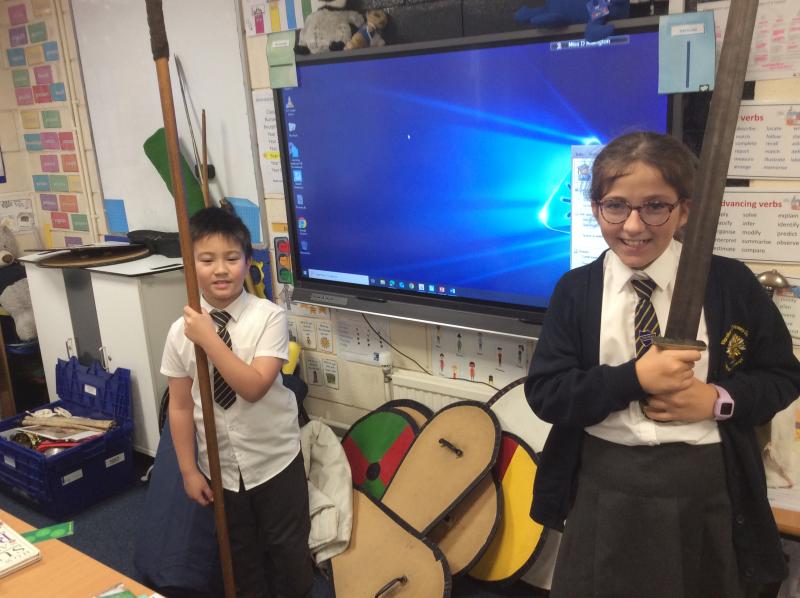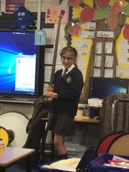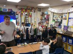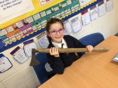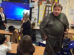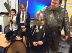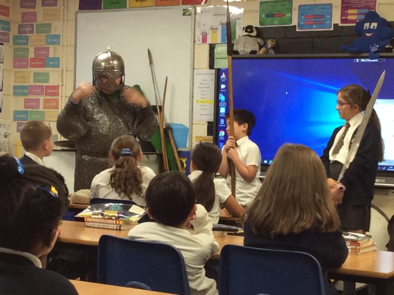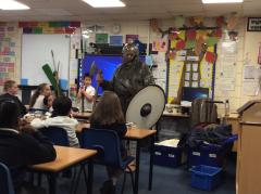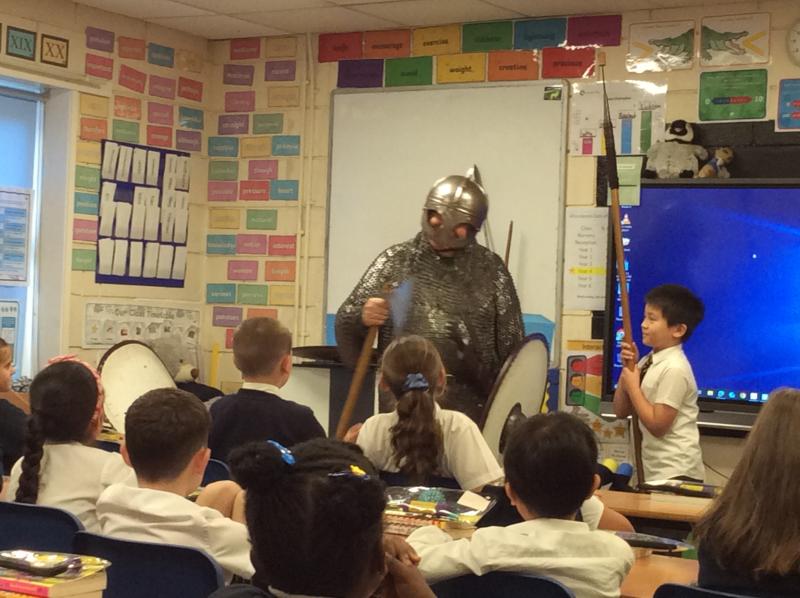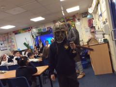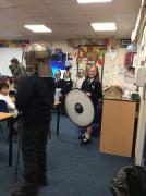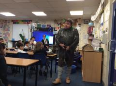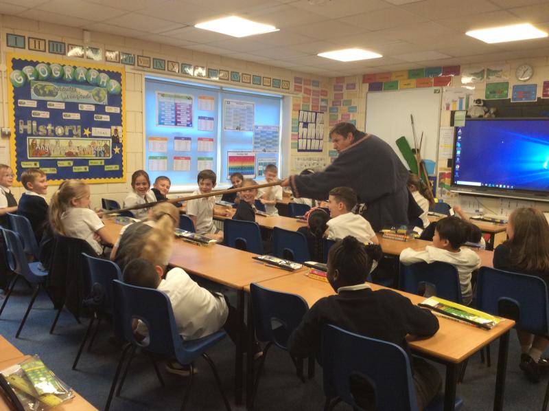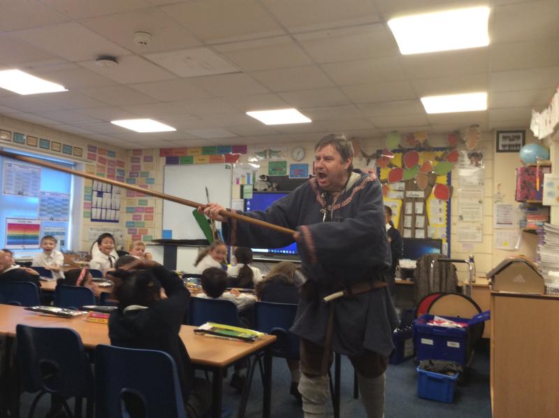 This afternoon, we had a visitor in our class in the form of a fierce Anglo-Saxon warrior!