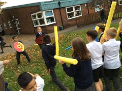 Under his guidance, we dressed as Anglo-Saxons and looked at lots of exciting artefacts including the armour and weapons they used. We ended the afternoon with a brutal outdoor battle!