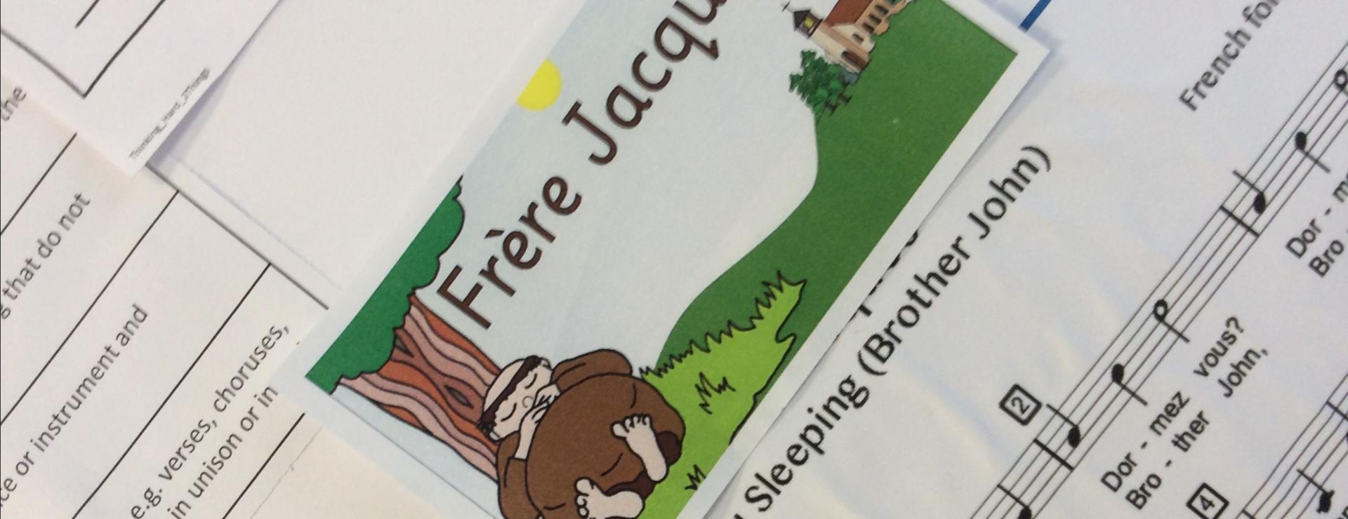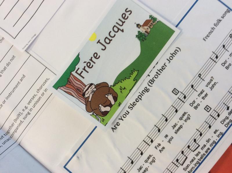 We completed the day with singing a French song called Frere Jacques. We sang in English and French. We used melody and harmony in our voices and sang in a round.