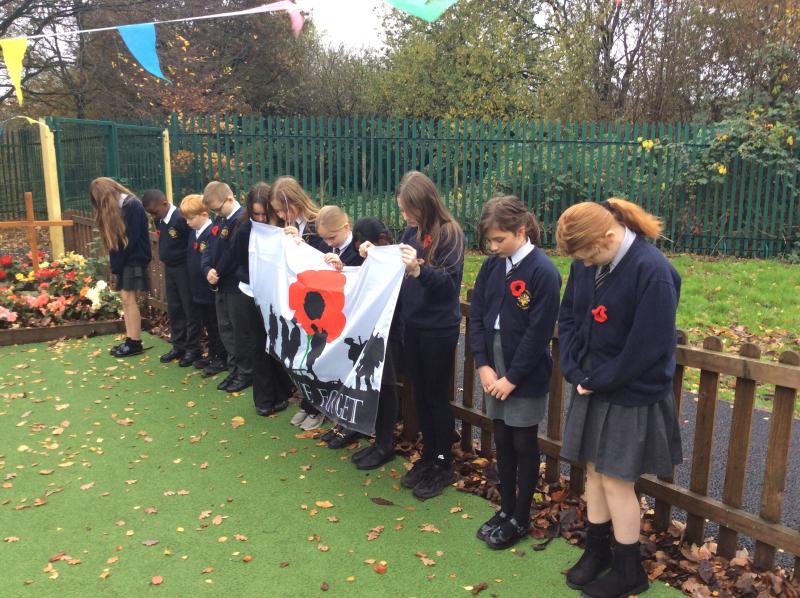 Earlier today, the children reflected on the meaning of Remembrance Day during Collective Worship with Mrs Walker. Then, at 11 o’clock, the junior pupils gathered quietly outside, while our Year 6 Senior Pupils met in God’s Garden to pay their respects. Everyone stood together for two minutes of silence to honour those who have served and sacrificed.