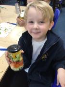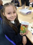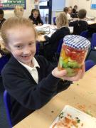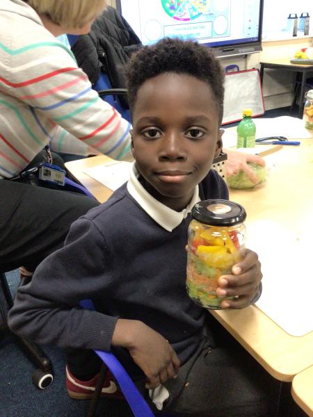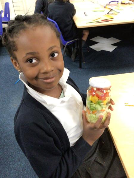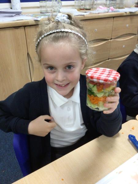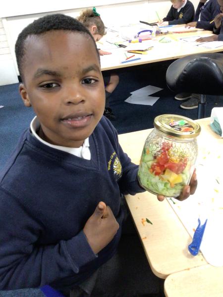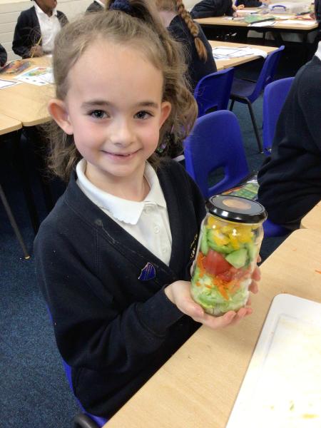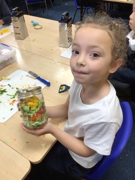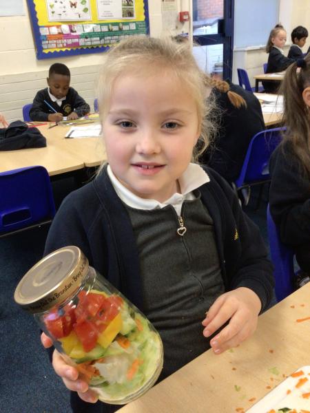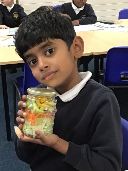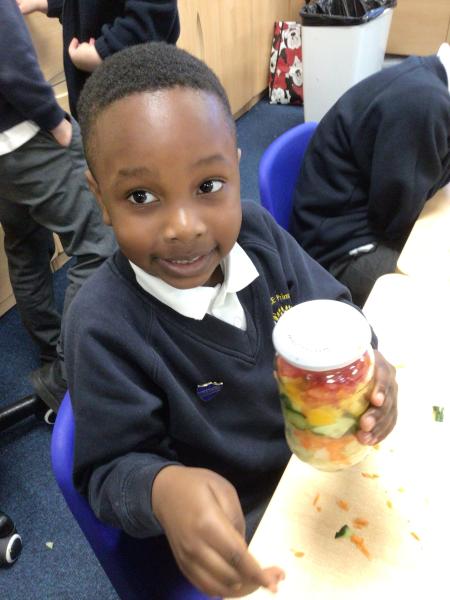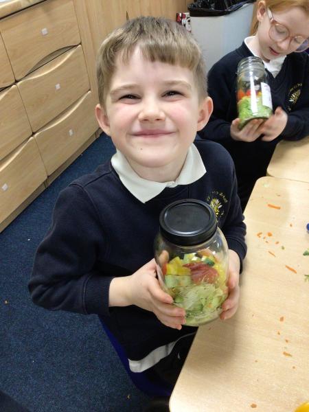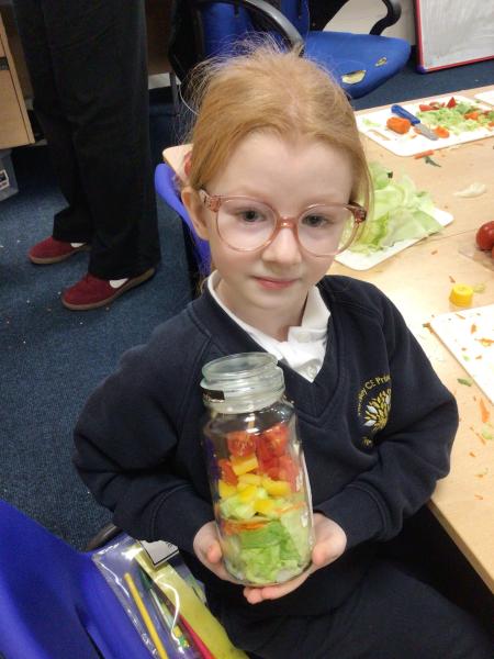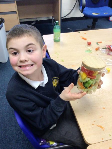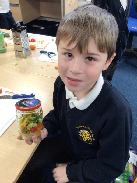 In our Design and Technology lessons we have been discussing eating vegetables and minimally processed foods, in order to find out what being 'healthy' means. We have found out that eating a variety of vegetables provides the body with the nutrients it needs. And, that by preparing our own pitta crisps it is much better for us than ultra-processed crisps. The children have been taught new skills in order to safely and responsibly use knives, peelers and graters. They prepared and made a rainbow salad in a jar and cut up and are soon going to chop up and fry pitta breads for crisps. The children had a fabulous time making their healthy alternatives and I hope they enjoyed eating them too.